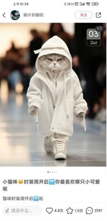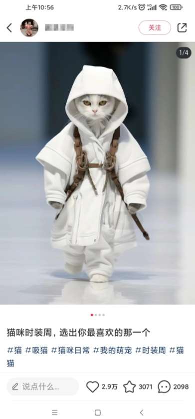 Animal秀,小红书上的明星项目,每次发布都轻松收获数万点赞!这不仅仅是猫咪走秀,更是一场独特的时尚盛宴,一只猫穿着时尚衣物,优雅地走上T台。这一别开生面的表演,让人眼前一亮,仿佛穿越到一个梦幻的时尚世界。